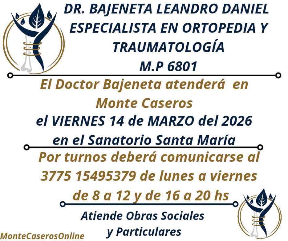 El Dr. Leandro Bajeneta atenderá en Monte Caseros