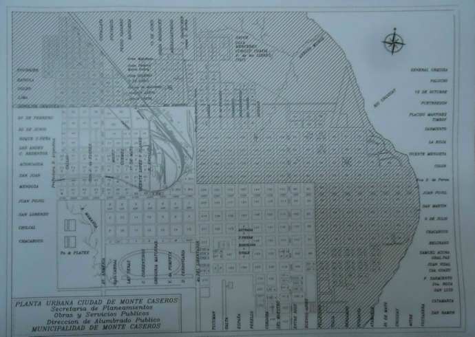 Se adjunta un plano de la localidad en donde se muestra el área afectada por la línea Monte Caseros 1, dentro de área se realizan los cortes por sectores.