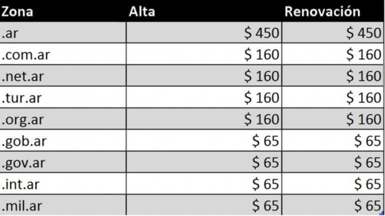 La novedad de la resolución 80/2013 es que se publicitaron los valores que habrá que abonar para tener un lugar en el mundo virtual. Los precios se diferencian de acuerdo a la terminación del dominio y varían si el trámite se realiza por primera vez o si se renueva un dominio existente.
