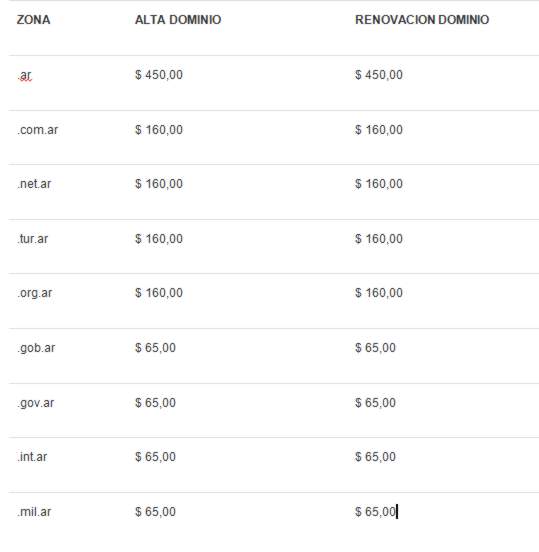 La novedad de la Resolución 80/2013 es que se publicitaron los valores que habrá que abonar para tener un lugar en el mundo virtual. Los precios se diferencian de acuerdo a la terminación del dominio y varían si el trámite se realiza por primera vez o si se renueva un dominio existente.