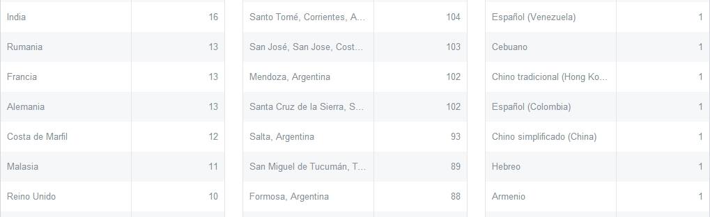 A CONTINUACIÓN COMPARTIMOS CON NUESTROS LECTORES un gráfico de las ciudades y los países de donde a diario nos siguen.