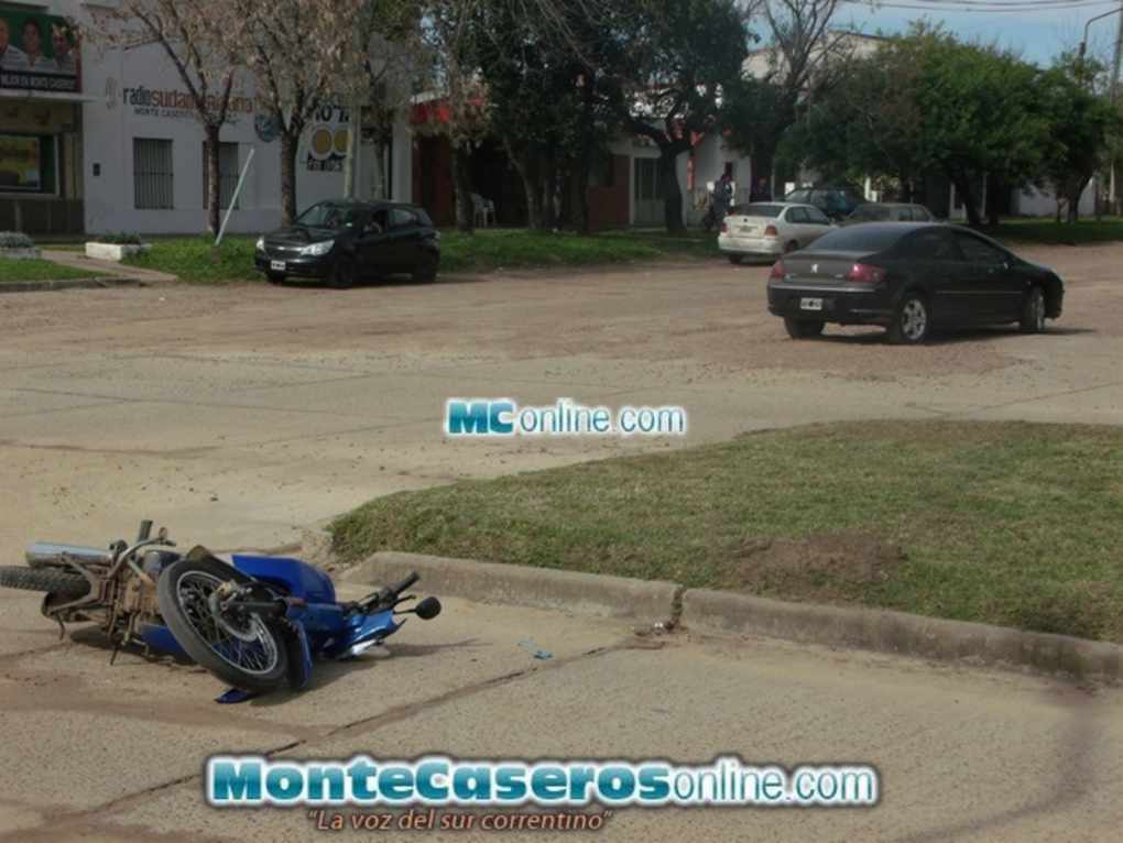 Un automóvil y una motocicleta protagonizaron un accidente de tránsito, producto del impacto la conductora del rodado menor fue trasladada en ambulancia a un Sanatorio privado para recibir atención médica.