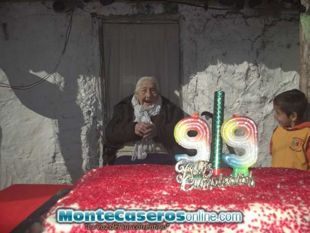 “En 2015 nuestra querida institución celebrará sus Bodas de Oro y en el marco de los preparativos para los festejos llevamos adelante el Proyecto institucional “Camino a los 50 el que consiste en realizar entrevistas a personas mayores de la zona, ellos son quienes nos cuentan historias de la escuela, los cambios con el correr del tiempo y las permanencias. Hace unos años realizamos una lista con los nombres de todas las personas ancianas y las fuimos visitando, conociendo… Clara es una de la lista, nos tocó visitarla en 2012, antes fuimos a lo de Efigenia Ramírez (97) y Eustaquio Ramírez (94) (hijos de la señora que donó el terreno para nuestra escuela). Cuando entrevistamos a Clara, en aquella oportunidad, nos contó, entre otras cosas que su cumpleaños era el 12 de agosto. Justo cuando nuestra escuela celebre los 50, ella estará festejando sus 100. Fue una fecha que se nos grabó y decidimos ir a celebrarle el cumple ese mismo año. Fuimos el 12 de agosto con todo el cumpleaños sorpresa y se lo preparamos, jugamos y le llevamos una caja llena de golosinas que los chicos juntaron. Ella se puso muy feliz, y fue así que repetimos la visita también este año, es un compromiso que hemos asumido desde la escuela junto a las familias. Y para el año que viene tenemos pensado ir nuevamente y mimarla, llenarla de besos y hacerle pasar un lindo momento” manifestó Angelita a MonteCaserosOnline agregando que “Clara es una mujer muy dulce, fuerte, simpática y entabla una conversación con los chicos que es admirable. La abrazas y se siente mucha ternura. Nuestros abuelos tienen mucho para contar, saben muchas cosas y quien mejor que nosotros para descubrirlas” concluyó