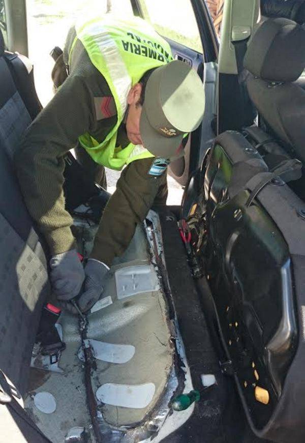 Los funcionarios llevaron a cabo la requisa con la ayuda del can detector de narcóticos “Paco”, detectando que en el interior, en el baúl y en el paragolpes del rodado se acondicionaban 94 paquetes con “cannabis sativa” marihuana con un peso que asciende a 63 kilos 328 gramos.