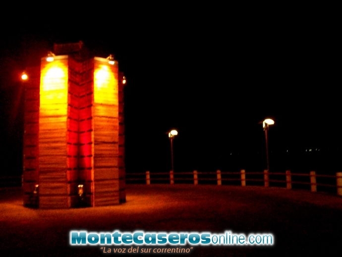 Instalación artística El faro que ilumina una idea y comunica tres países  En la noche de ayer, sábado 16 de octubre, nos dirigimos al Mirador de nuestra ciudad, allí, pudimos observar y nuestras cámaras captar imágenes de la primera instalación artística, que como lo habíamos anticipado se colocó en Monte Caseros… con el nombre El Faro del Citrus…. Y una frase estampada en el cartel que lo señala dice La imaginación no tiene fronteras… nuestro pueblo tampoco, y allí en el centro, iluminada, se encuentra esta obra de arte, que tiene como autores a Claudio Rupani y Alejandra Malvicino. Con esta instalación lo que se hace es cerrar el convenio de Arte Mesopotámico, estaba previsto contar con la presencia de las autoridades de los países vecinos, Bella Unión Uruguay y Barra do Quareí Brasil, quienes no pudieron estar debido a que el río se encontraba picado, pero seguramente durante la semana se llevará a cabo la firma. MonteCaserosOnline dialogó con Alejandra, quien nos explicó un poquito más acerca de esta Instalación y la firma del convenio Marco legal de Arte Mesopotámico que con una instalación artística pretende comunicar una idea y materializarla… … “La misma está hecha de cajones de citrus porque nosotros, nuestra ciudad trabaja con ellos, esos cajones contienen parte de lo que es Monte Caseros, algo emblemático… comentó Alejandra, a lo que agregó, “porqué un faro, porque éste ilumina, tiene un haz de luz que llega a Bella Unión Uruguay y Barra do Quareí Brasil”.