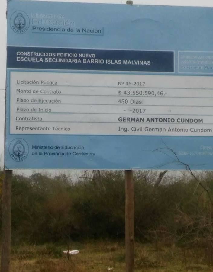 “La escuela contará con nueve aulas, sanitarios, oficinas administrativas y laboratorio. Además está previsto que se construya un jardín de infantes que funcionaría de manera independiente en el lugar. Aún no sabemos qué escuela funcionaría allí, ya que el Gobernador Ricardo Colombi en reiteradas oportunidades había prometido la concreción de dos escuelas para la ciudad, una para el Colegio Juan Pablo II que ya está en marcha en el Barrio Florida y para Escuela Fernando Erro y el Colegio Ernesto Sábato que no tienen edificio propio, hasta el momento no hay una determinación oficial de cuál de ellas funcionaría en este lugar” indicó el Jefe Comunal.
