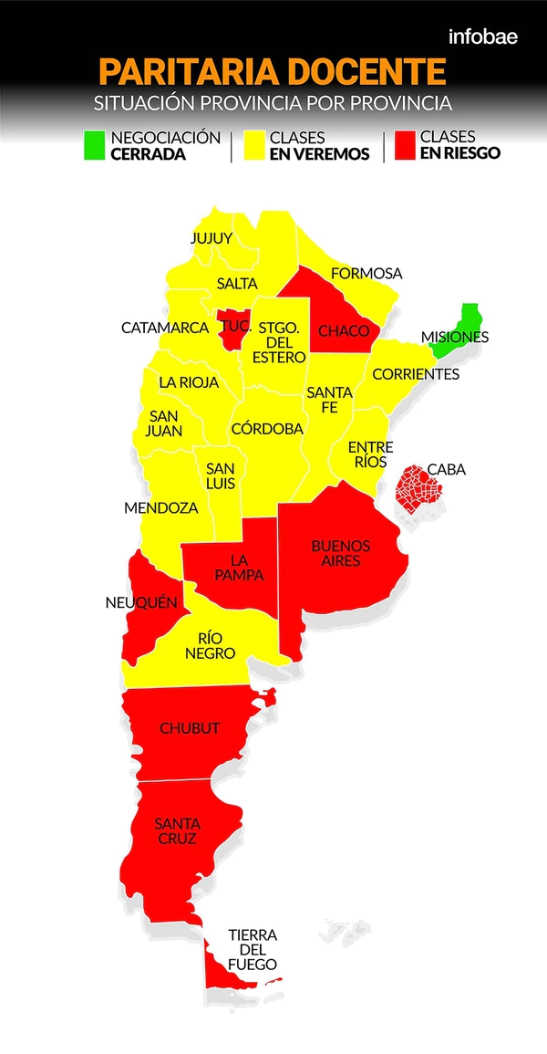 Infobae hizo un relevamiento de la situación que atraviesa cada provincia en las paritarias entre sus gobiernos y gremios docentes: