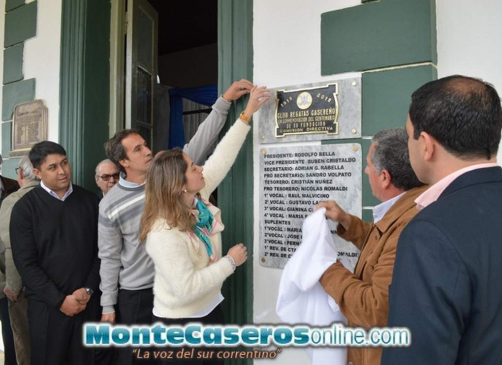 Continuando con la programación miembros de comisión directiva y autoridades presentes fueron invitados a descubrir una placa ubicada frente al club en conmemoración al centenario de su fundación. Posteriormente se procedió a dar lectura a la declaración de interés por los cien años del Club Regatas Casereño de la Honorable Cámara de Diputados de la Provincia de Corrientes.