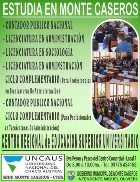 Ciclo lectivo 2019 Elegí estudiar carreras universitarias gratuitas en Monte Caseros  No pierdas la oportunidad de estudiar y ampliar tus horizontes. Monte Caseros te ofrece la posibilidad de prepárate para el futuro.