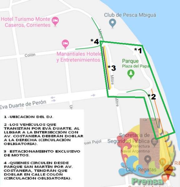 En el predio asignado habrá DJ y baños, como así también se amontará un operativo de seguridad con ambulancia, policías, inspectores de tránsito y estacionamiento exclusivo para motos.