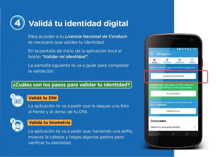 La licencia tendrá validez dentro del territorio nacional. Para obtenerla, el primer paso es descargar la aplicación Mi Argentina, disponible en iOS y Android. La descarga implicará validar la identidad y poder acceder a la licencia. Tras registrarse, sólo serán necesarios dos datos: correo electrónico y CUIL.