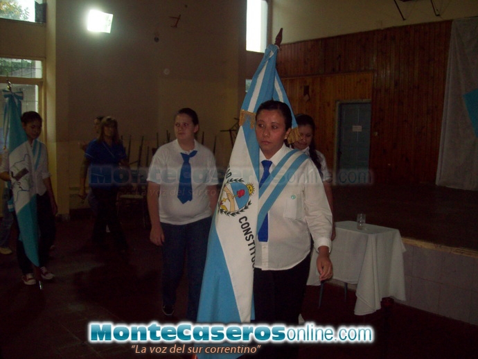 Continuando con el acto, la Rectora del Colegio agradeció a la Diputada por el obsequio, para finalizar Areta dirigió unas palabras “hoy de nuevo llego a esta escuela, al Colegio Secundario Juan Pablo II, de alguna manera para retribuir lo que me dieron y me vienen dando todos los chicos de Monte Caseros desde hace muchísimos años. Soy Psicóloga, he trabajado por más de treinta años en el Hospital Samuel W Robinson, en el gabinete de la escuela Especial, también en un sanatorio, he trabajado muchísimo con los adolescentes, fui una de las pioneras, se podría decir, de la educación sexual en Monte Caseros, porque para mí los jóvenes son la base de una sociedad, y no lo digo en forma demagógica sino que lo digo con total sentimiento. Los niños por supuesto y la juventud. La Bandera de Monte Caseros significa directamente lo que a mí me pareció durante toda mi vida y trabajo, la decisión imperiosa de tener una bandera para dar identidad al pueblo, porque nuestro pueblo tiene que tener una identidad propia, y para eso, fundamentalmente se abrió un concurso del que participaron todas las escuelas, con un jurado que determinó el dibujo ganador. La escuela Nº 89 fue esa institución. Fue un proyecto que lo hice como Concejal, y a través de la edil Cusinato, el año pasado, por una ordenanza municipal se realizó en forma concreta. Para mí el portador de la Bandera tiene que ser fundamentalmente la persona más comprometida, no necesariamente tienen que ser 10, sino en cuanto a la parte de relación, que sea sociable, cree vínculos, trabajo, que reine el compañerismo, de alguna manera hacerse cargo de lo que pasa en la sociedad. Trabajar para el pueblo, para el grupo al que pertenece, y ese debe ser el elegido, ese es el fin” manifestó Agregando que “en estos momentos justamente estamos llevando a cabo con una inmensa participación de escuelas nivel primario un concurso, trabajando sobre un tema candente, el Maltrato Animal, el chico o grupo que gane este concurso va a tener un premio al igual que la escuela. Ese proyecto se verá reflejado en toda la Provincia, el resultado debe salir de alguna manera. El compromisos tiene que nacer desde el fondo del alma, desde los más chicos a los más grandes; los docentes están con muchísimo trabajo para realizar la elección que se llevará el 29 de abril, es igual al de símbolo de la bandera”