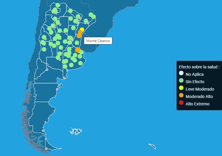 Monte Caseros es la segunda ciudad en el Ranking de Temperaturas de la hora 16:00 horas que dio a conocer el Servicio Meteorológico.