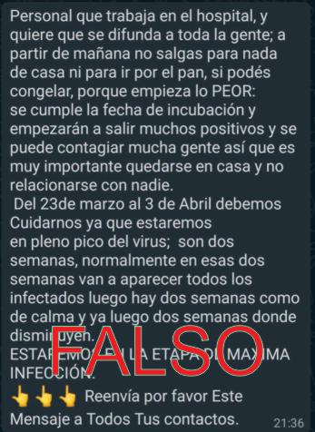 “El mensaje es falso, primero que no dice Hospital Robinson, segundo yo le habría comentado que ante el primer caso sospechoso ustedes (periodistas) van a ser los primeros en saber, hasta el momento no tenemos ninguno y cualquier información que nosotros queramos dar de nuestra institución se la vamos a informar. Ese comunicado es falso” expresó mediante un mensaje de texto el Director del Hospital Samuel W Robinson., Dr. Darío Miño al ser consultado sobre un mensaje que se viralizó a través de las redes sociales.