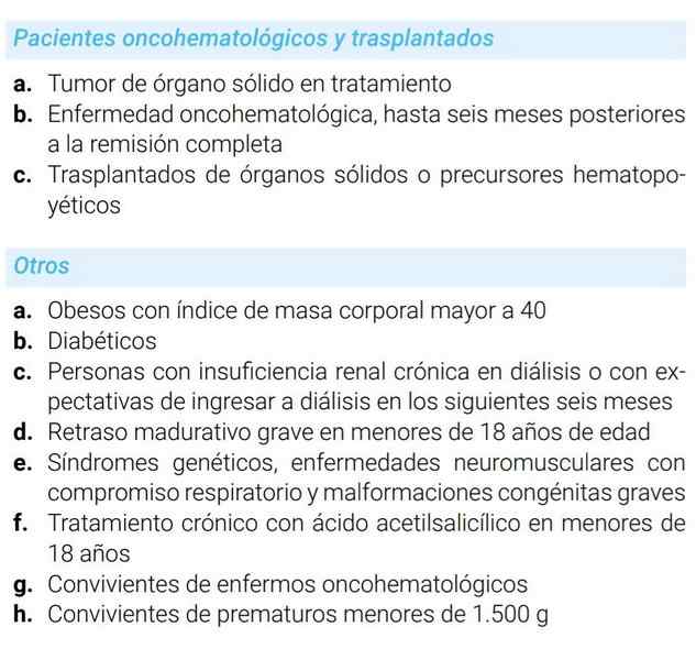 Cuando se finalice con la inmunización de los adultos mayores, se continuará con las personas de más de 2 años hasta 64 con factores de riesgo.