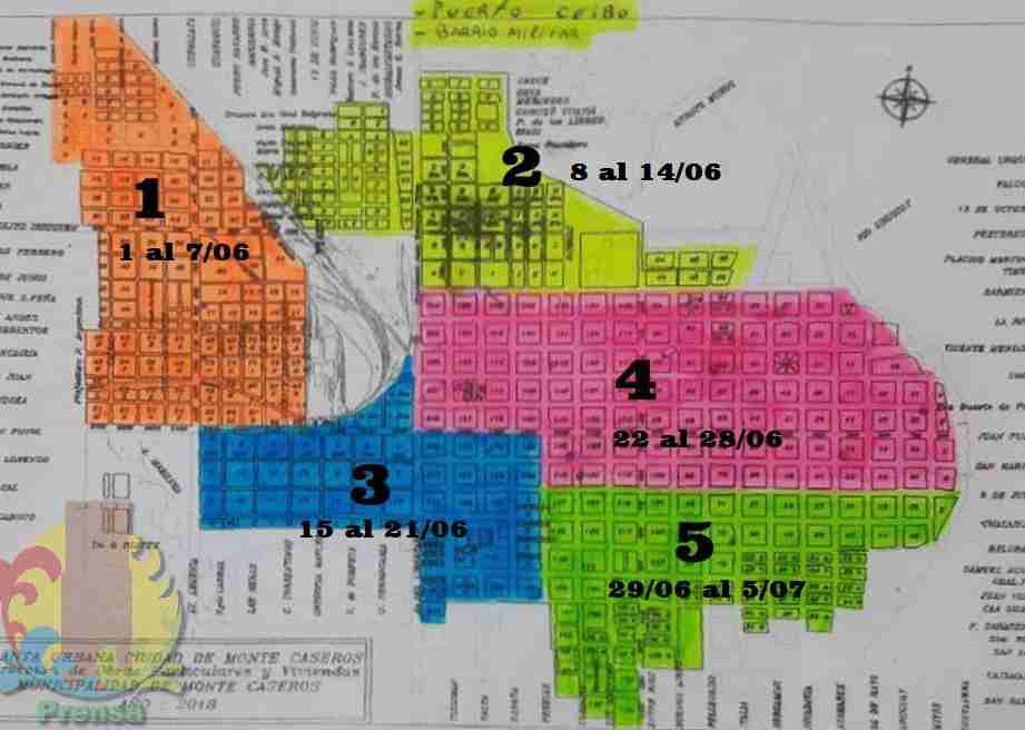 5) Del 29 de junio al 5 de julio SECTOR VERDE: 9 de julio, Costanera, Termas Gauchito Gil, San Ramón Sur, Perelló.