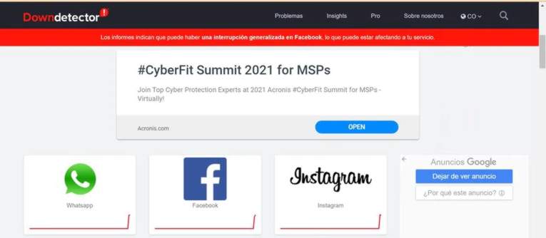 Este es el aviso automático que tiene la página mundial Downdetector: