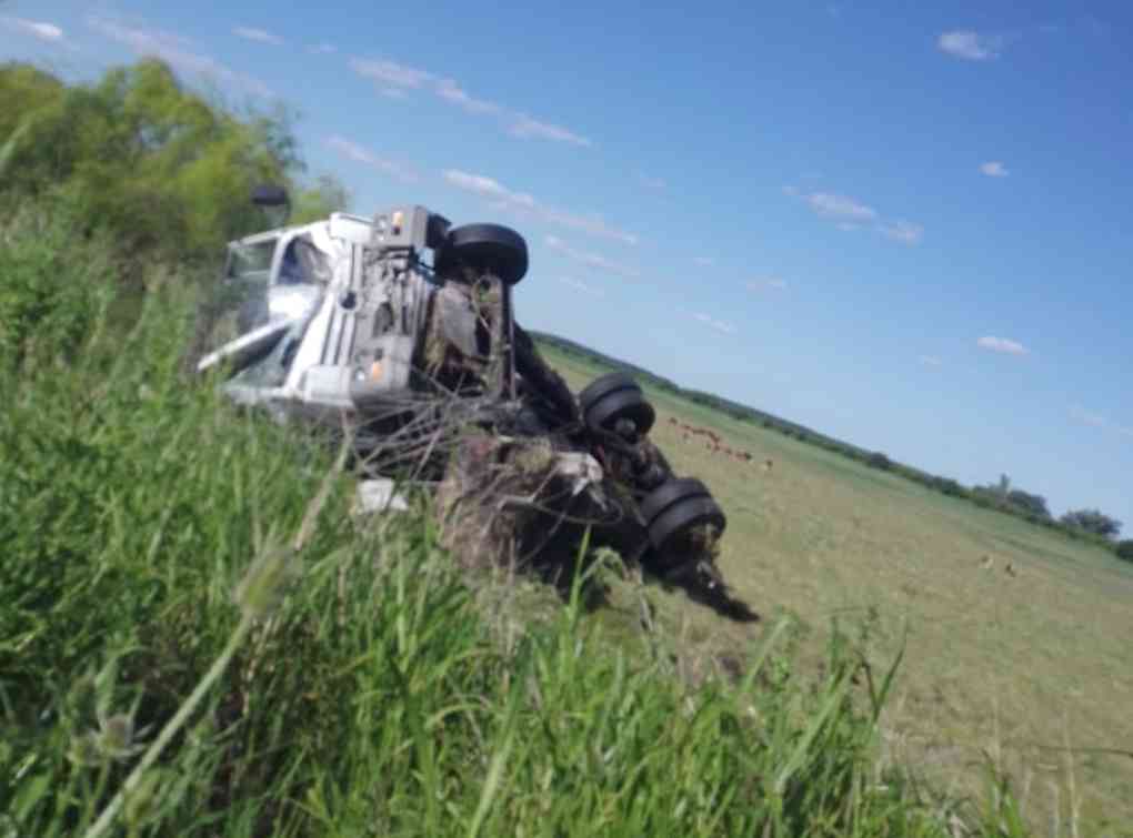 Camión conducido por un montecasereño volcó en Ruta 14, cerca de Pedernal