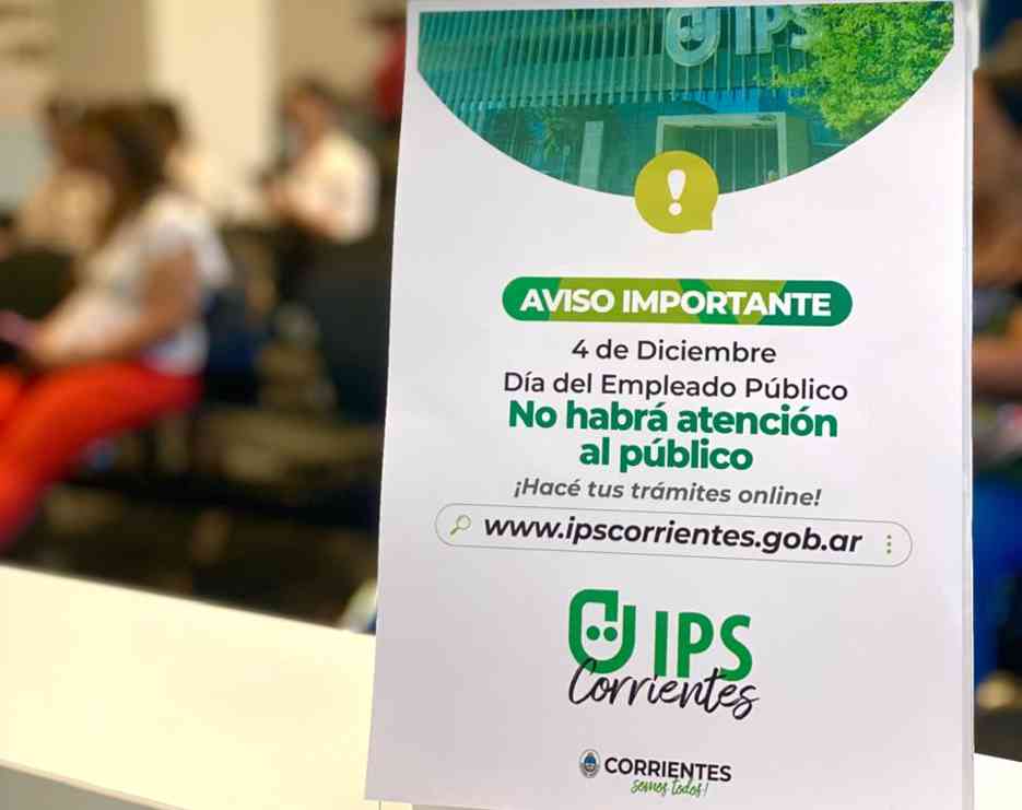 En este marco, la mayoría de las dependencias provinciales permanecerán cerradas. Entre ellas, el Instituto de Obra Social de la Provincia de Corrientes (Ioscor) y el Instituto de Previsión Social (IPS) no atenderán durante toda la jornada al igual que en otras oficinas de ministerios y entes descentralizados, excepto en aquellos que dispongan de guardias para garantizar servicios esenciales.