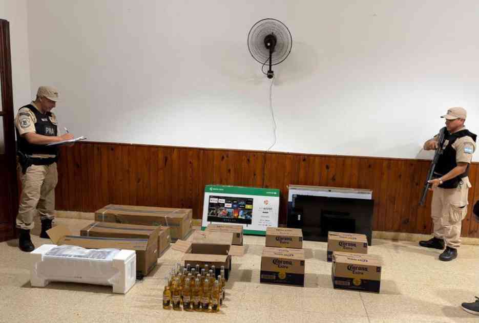 El operativo se realizó en el sector conocido como Puerto La Cruz. Entre los elementos hallados había equipos de aire acondicionado, televisores y packs de cerveza. La mercadería fue valuada en más de tres millones de pesos.