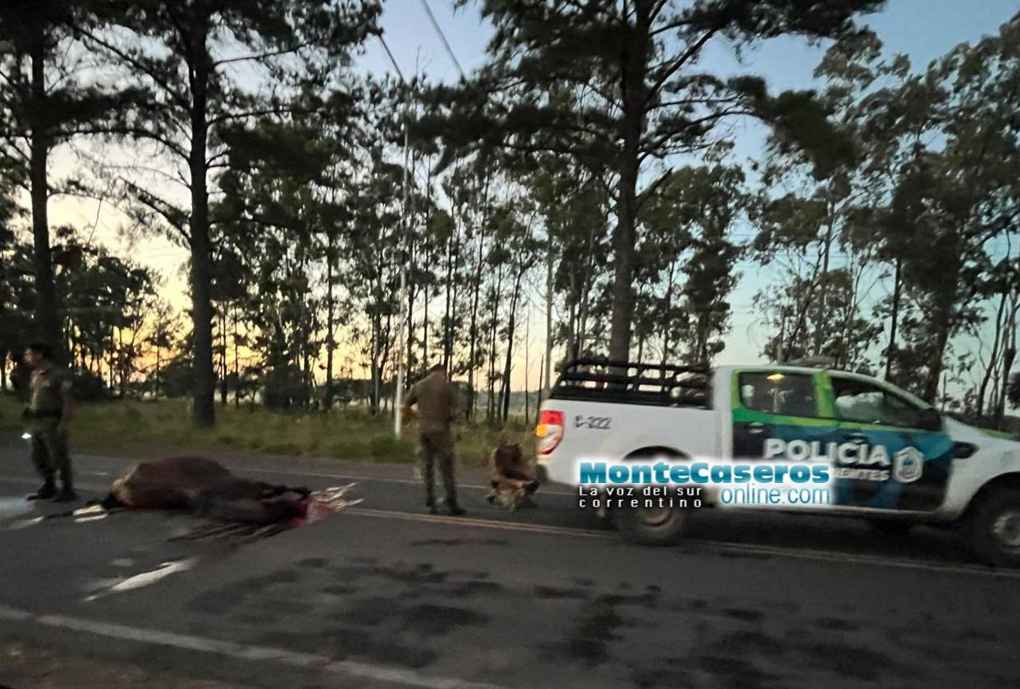 En las primeras horas de este lunes, se produjo un accidente sobre la Ruta Provincial N° 129, en inmediaciones del acceso a la ciudad de Monte Caseros, cuando un automóvil colisionó contra un caballo que se encontraba sobre la calzada.
