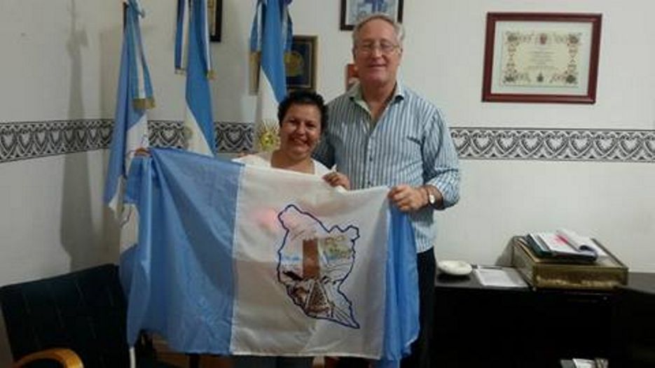 El Jefe Comunal, donó este martes 26 de diciembre el emblema de la ciudad al Colegio Secundario “Del Mercosur” de Colonia Libertad. En representación del establecimiento lo recibió Alicia Schey, profesora de la institución.