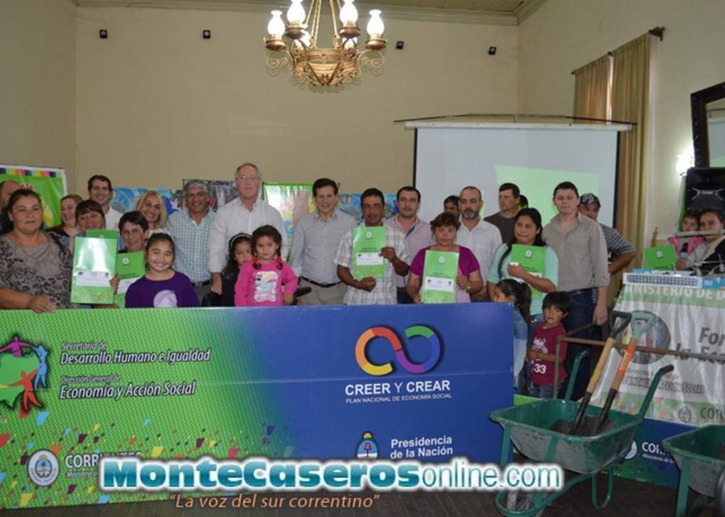 En el Salón Dorado de la Municipalidad de Monte Caseros se hizo entrega a los beneficiaros del Plan Nacional Social “Creer y Crear” de las herramientas, maquinarias y estructuras con el fin de fortalecer las capacidades de los emprendedores de la economía social y consolidar sus estrategias de autoempleo.
