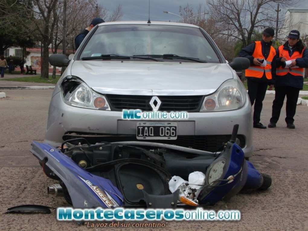 Una motocicleta y un automóvil protagonizaron un nuevo accidente de tránsito.