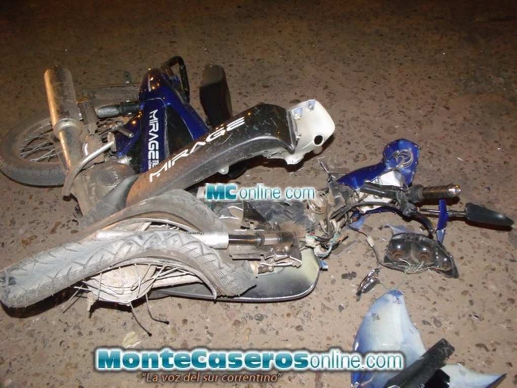 Un automóvil Renault Logan dominio HCF 577 conducido por Camila Gorbeña de 18 años impactó con una motocicleta Brava 150 capa patente 627 IUP en la cual se trasladaba José Emanuel Pared de 22 años.