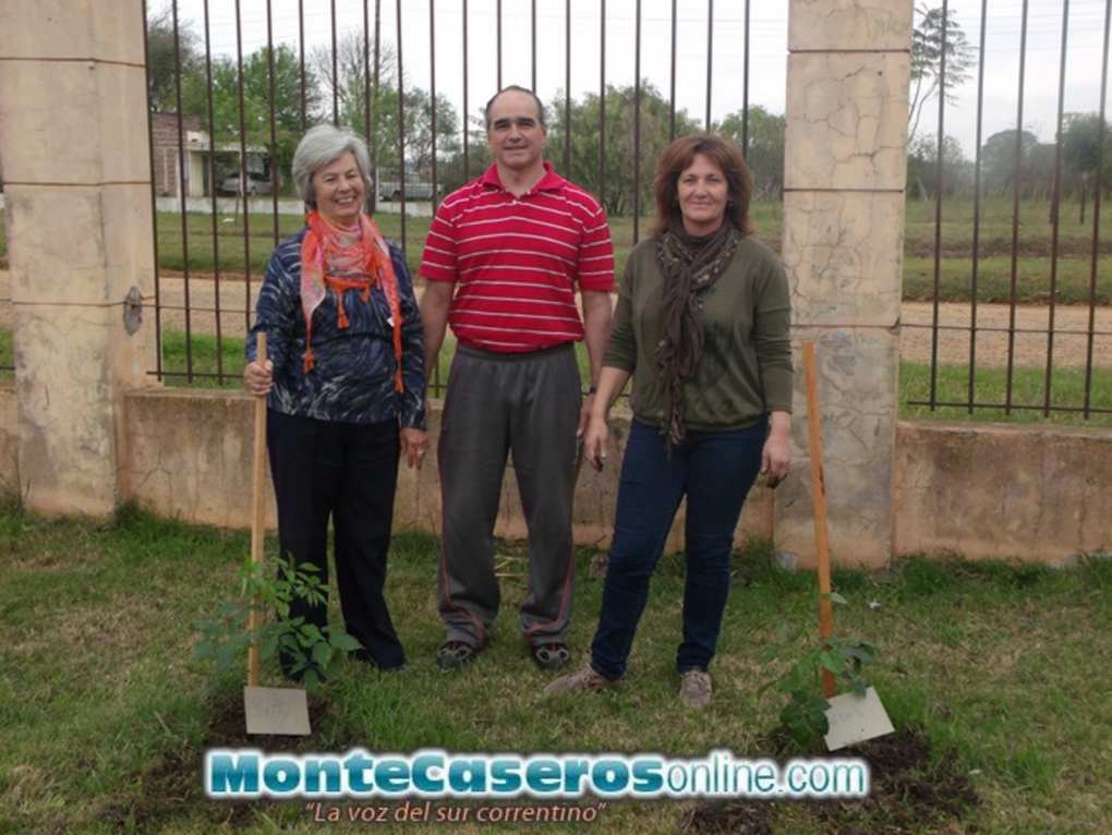 Con los nombres de Agnes Clarker y Bety Silva fueron bautizados los dos ejemplares de Lapacho plantados en un rincón del patio de la Escuela Normal Ramón J. Cárcano.