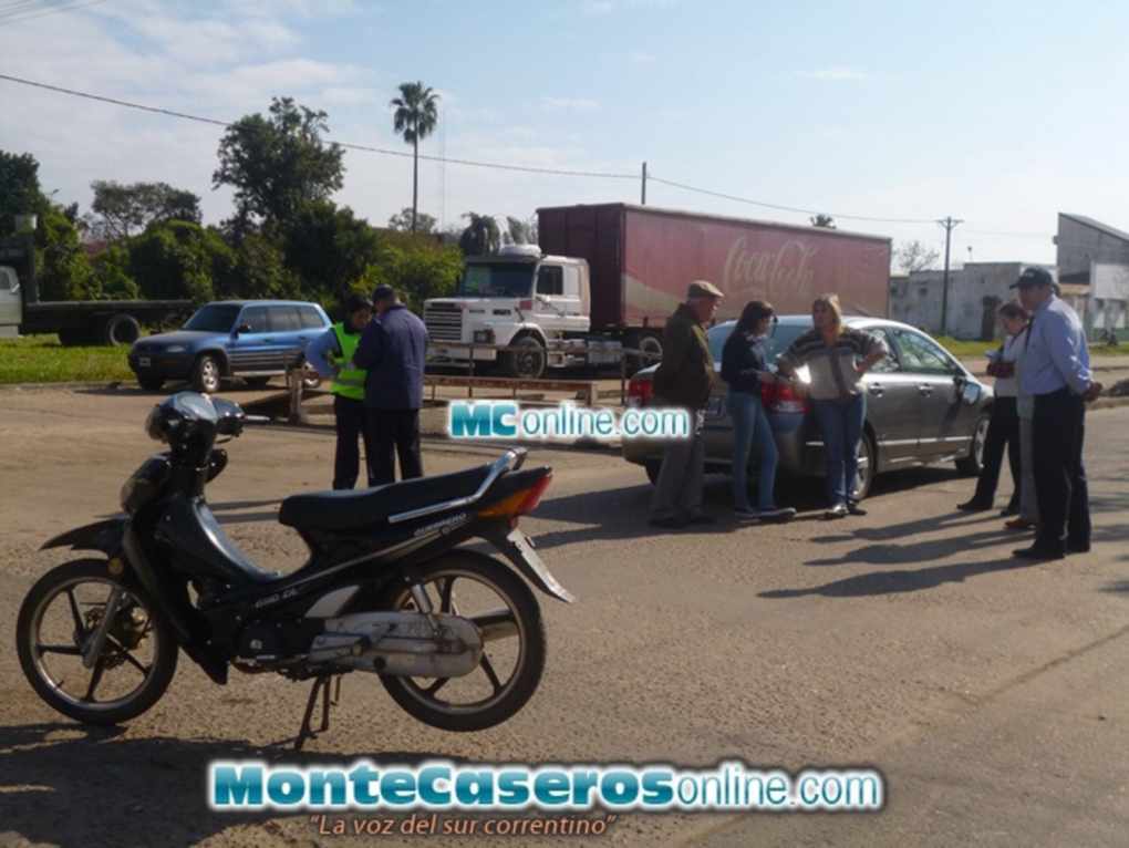 Un automóvil y una motocicleta protagonizaron un accidente de tránsito, el hecho ocurrió en la esquina de Vicente Mendieta y Perelló 12:10 horas aproximadamente.