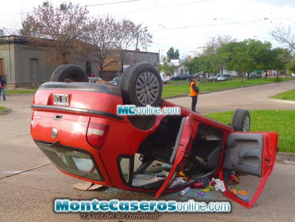 Por razones que se desconocen luego del violento impacto el VW Gol volcó y quedó con las ruedas hacia arriba.