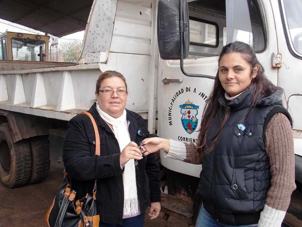 La Subsecretaria Natalia Percara en representación de la Secretaría de Planeamiento, Obras y Servicios Públicos del municipio, en la mañana de este jueves 22 de mayo, hizo entrega de un camión a la Directora de Asuntos Rurales Mary Ojeda de Parada Labougle, con el fin de ampliar las herramientas con las que cuenta el lugar para realizar diferentes tipos de servicio.