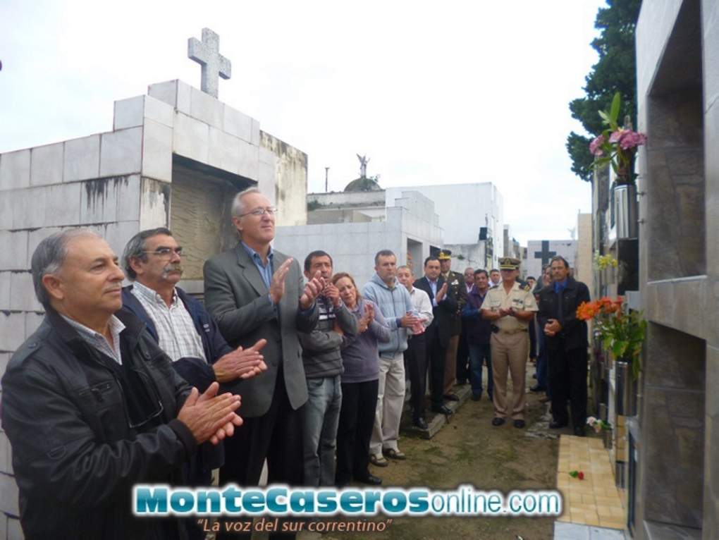 , representantes de la delegación de la CGT Monte Caseros, junto al Intendente Miguel Olivieri, funcionarios municipales, integrantes de las fuerzas armadas y referentes sindicalistas de distintas instituciones locales, colocaron tres placas recordatorias en el Cementerio de la Misericordia.