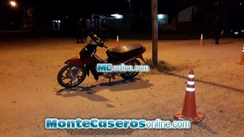 Durante las primeras horas de este lunes 21 de abril, se produjo un accidente de tránsito en la intersección de las calles General Paz y Córdoba, donde una motocicleta 110 cc chocó un poste de luz.