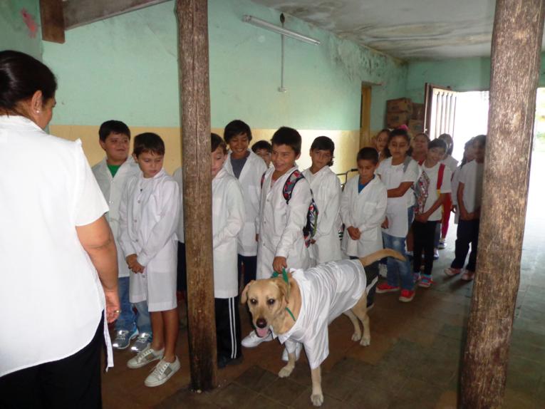 Ulises, al ser un perro muy inquieto, comenzó a ingresar a las diferentes aulas de la escuela y quedó en volver a visitarla dentro de dos meses para ll...