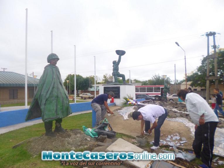 Veteranos reacondicionan la Plazoleta Malvinas para los actos del 2 de abril