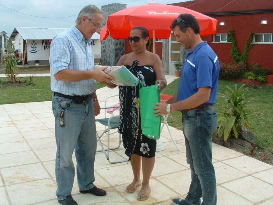 El intentente Miguel Ángel Olivieri junto al secretario de hacienda Ernesto Vello hicieron entrega del presente a quien al ingresar al Parque y recibir la entrada fue sorprendida con la noticia de que era la visitante Nº 1.000 y por tal motivo se adjudicaba un premio.