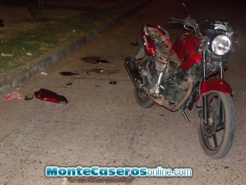 A las 00:30 horas de este lunes 30 de diciembre, una motocicleta Bravo 150cc en la cual se trasladaba Celestino Pedro Méndez colisionó con un automóvil Fiat Uno dominio LXO 426 perteneciente a Neris Carlos Alberto Salgado que se encontraba estacionado.