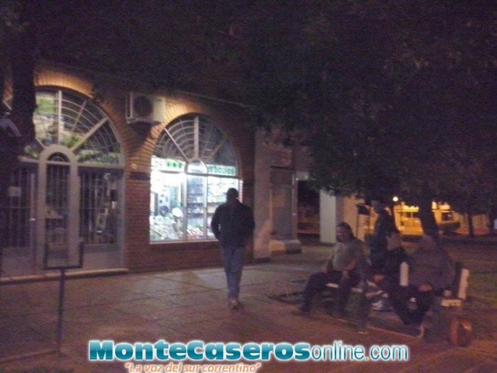 Comerciantes del centro de la ciudad de Monte Caseros custodian sus negocios.