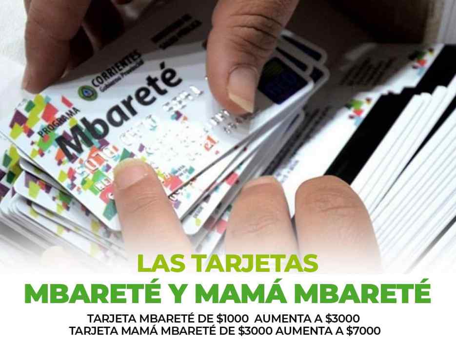 En el caso de la Mbareté, el beneficio pasará de 1.000 a 3.000 pesos y la Mamá Mbareté, de 3.000 a 7.000 pesos. Con este aumento, el Gobierno provincial destinará aproximadamente 162.000.000 de pesos mensuales para ambas tarjetas.