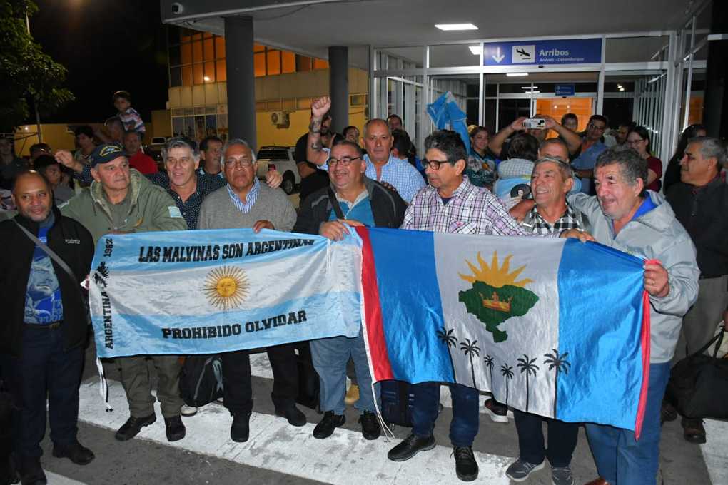 Este domingo, alrededor de las 19hs, los 20 excombatientes junto al periodista Daniel Toledo y el camarógrafo Armando Cattáneo arribaron al Aeropuerto "Dr. Fernando Piragine Niveyro", luego de pasar una semana en las Islas. Estos fueron recibidos por el Ministro de Seguridad, la Banda de Música del Servicio Penitenciario, sus familiares y amigos. Posteriormente, realizaron una caravana por la Ciudad y este lunes serían recibidos en el Despacho del Gobernador Gustavo Valdés.