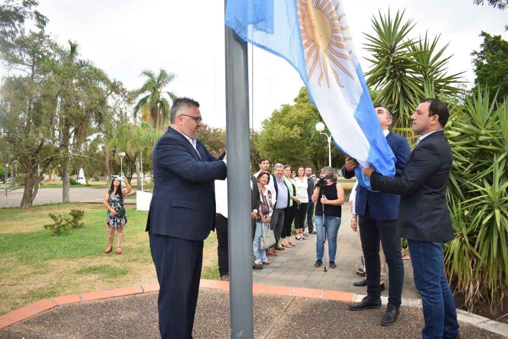 El intendente Juan Carlos Alvarez al cumplirse este dos de febrero 168 años de la fundación del Departamento de Monte Caseros en el pueblo llamado, por ese entonces, Paso de los Higos realizó el izamiento del Pabellón Nacional.