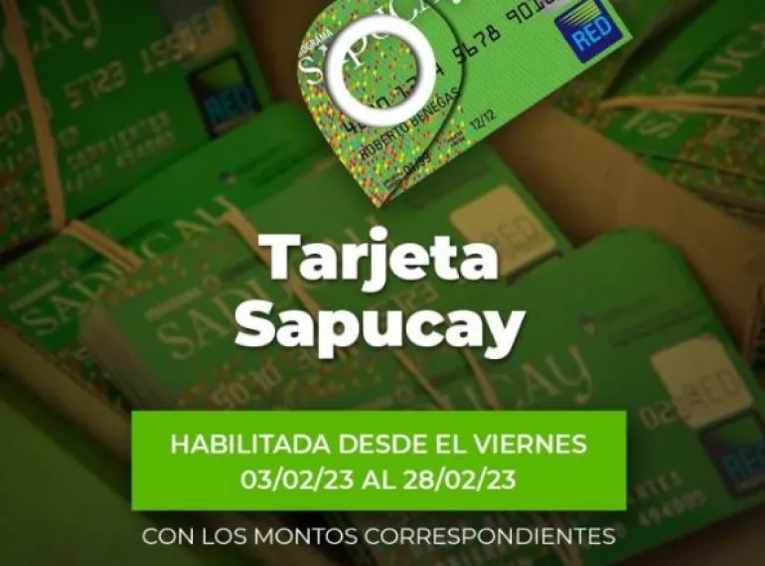 El Ministerio de Desarrollo Social del Gobierno de Corrientes informa a los beneficiarios del Programa que las Tarjetas Sapucay desde este viernes 3 de febrero estarán habilitadas hasta el 28 de febrero de 2023 inclusive.