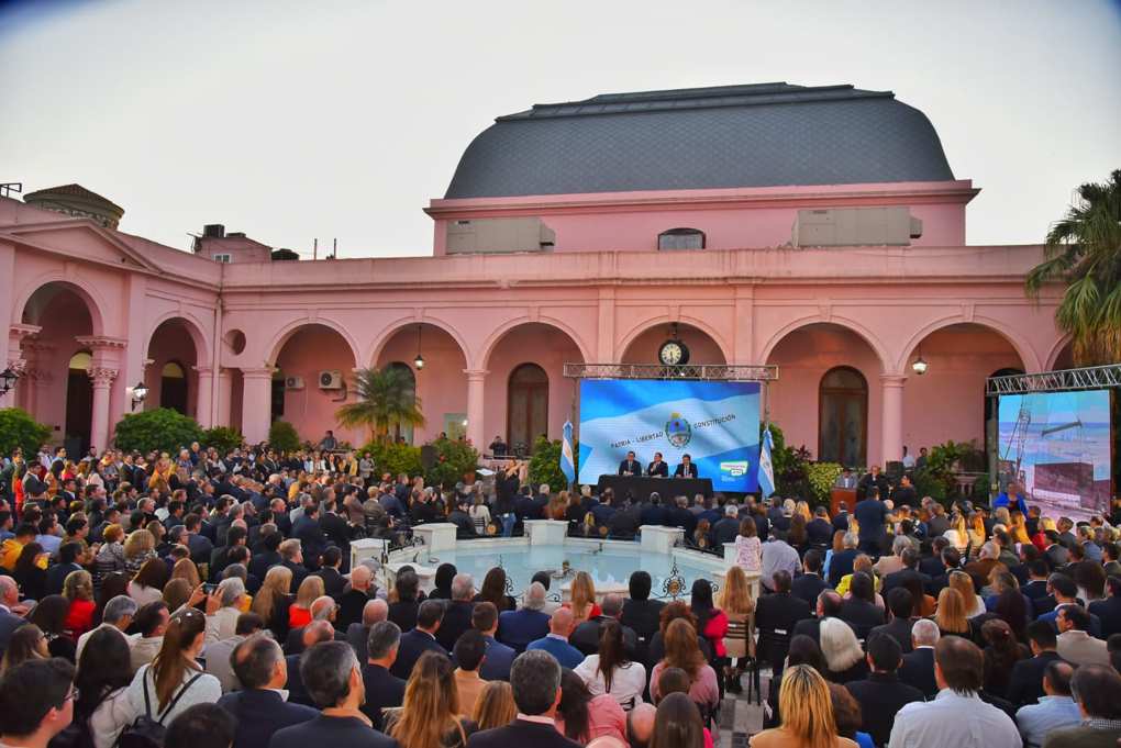 El patio de la Casa de Gobierno estuvo totalmente colmado este martes a la tarde, mientras el gobernador Gustavo Valdés y numerosos representantes estatales y de la sociedad civil firmaron allí el nuevo Pacto Correntino para el Crecimiento Económico y el Desarrollo Social.