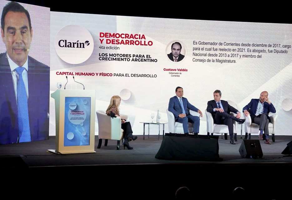 El gobernador Gustavo Valdés participó del panel del ciclo "Democracia y Desarrollo", organizado por el Diario Clarín y durante la charla, habló de las obras faltantes en el Norte como el gasoducto criticando fervientemente al Gobierno nacional.