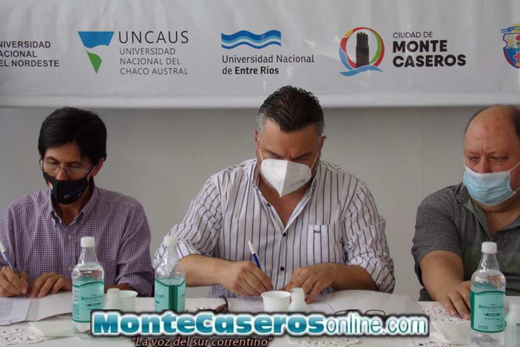 El Intendente Juan Carlos Alvarez encabezó el acto junto a Jorge Frete, del Instituto Provincial de Teatro, los acompañaron la Secretaria de Gobierno Claudia Alvarez y el Gerente de Carreras Universitarias el CRESU Ing. Eduardo Fryziuk. En la ocasión, también se concretó la firma de convenio entre el Instituto Nacional del Teatro y la Municipalidad de Monte Caseros.