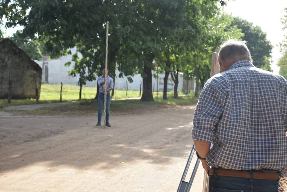La Secretaría de Planeamiento e Infraestructura del municipio realiza trabajos de relevamiento de niveles, en el Barrio San Martín, para pavimentar 907 metros de la calle Chacabuco.