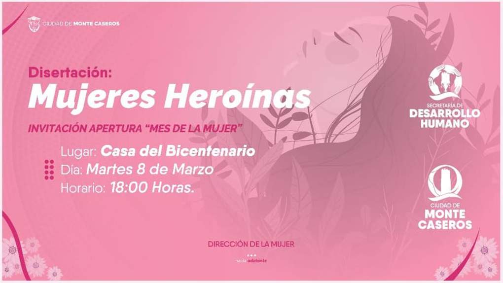 El 8 de marzo se celebra el Día Internacional de La mujer, en este marco la Municipalidad de Monte Caseros a través de la Dirección de la Mujer de la Secretaria de Desarrollo Humano realizará una disertación “Mujeres Heroínas”.