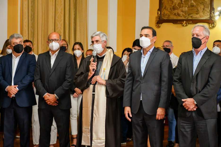 Como parte de su recorrida por distintas instituciones de la ciudad ante la emergencia ígnea, la imagen de la virgen morena se trasladó esta mañana hacia el Salón amarillo. Allí, se realizó una ceremonia religiosa presidida por monseñor José Adolfo Larregain, oportunidad en la que el gobernador de Corrientes oró por el amparo de bomberos y habitantes afectados por los distintos incendios.